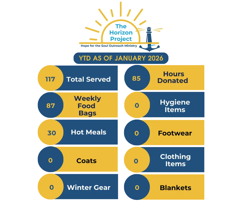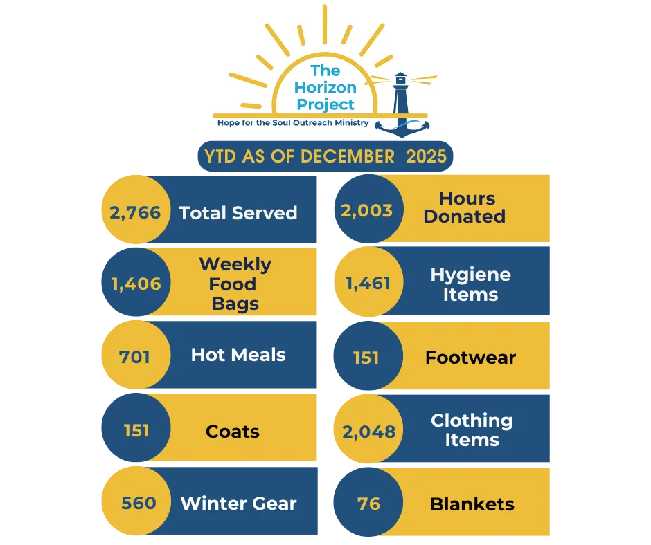 Part of Hope for the Soul’s mission and culture has always been to serve those in need. In 2020, we were introduced to a program that needed food for Thanksgiving meals. Over time we slowly became more involved and starting in 2023, we decided to focus our efforts with much more intentionality. We began providing weekly support, and The Horizon Project was born!